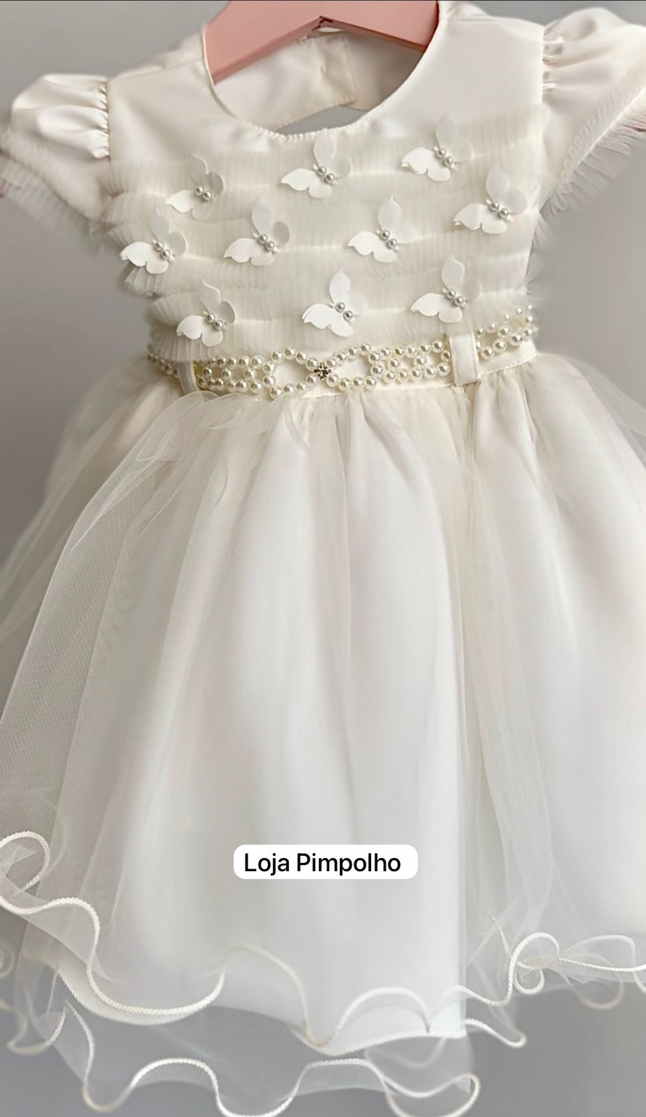 Vestido de Batizado Off White Borboleta – Delicado, Elegante e Confortável | Pimpolho Loja Infantil